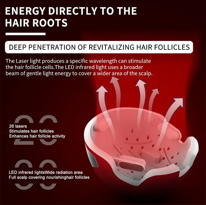 Are you looking for a natural and intensive solution to hair loss or thinning hair? This special red light therapy helmet offers a science-based method to not only promote hair growth, but also improve the overall health of your hair and scalp.