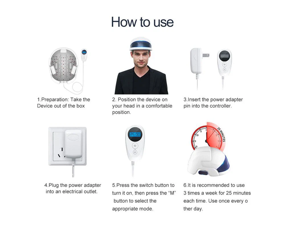 Home use: With this special helmet, you can easily use red light therapy at home and at a fraction of the cost of surgical transplantation.